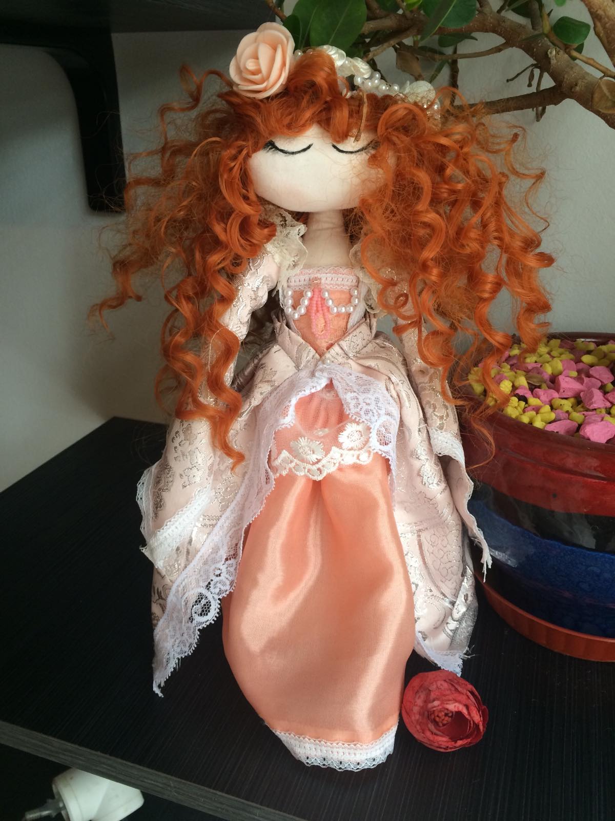 Elegant, shy and beautiful Princess with fire red hair